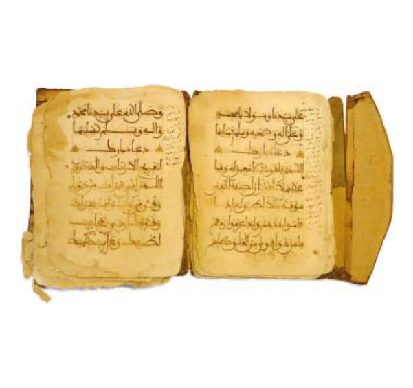 En el folio 112, indica: He comprado este libro dorado con título as-Shifa Cadi Iyad, a su primer propietario Muhammad b. Umar, en una compra legal, a 45 mitqal de oro puro (225 gramos de oro), pagado al contado, ante los testigos, mis compañeros. Esto tuvo lugar dos meses después de nuestra llegada al Tuwat, viniendo de Toledo, localidad de los Quti. Vamos camino a la tierra de los negros. Pedimos a Allah el Todo Poderoso que nos dé allí la tranquilidad. El esclavo de su señor, Ali b. Biyad al-Quti. Este 22 del mes de Muharram del año 873 de la Hégira.